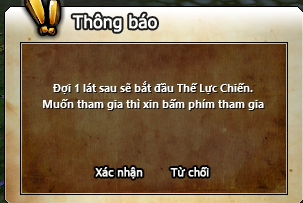 Phe thắng : 10000 điểm võ huân và 10 Danh vọng thế lực ,buff 300% exp 30 phút